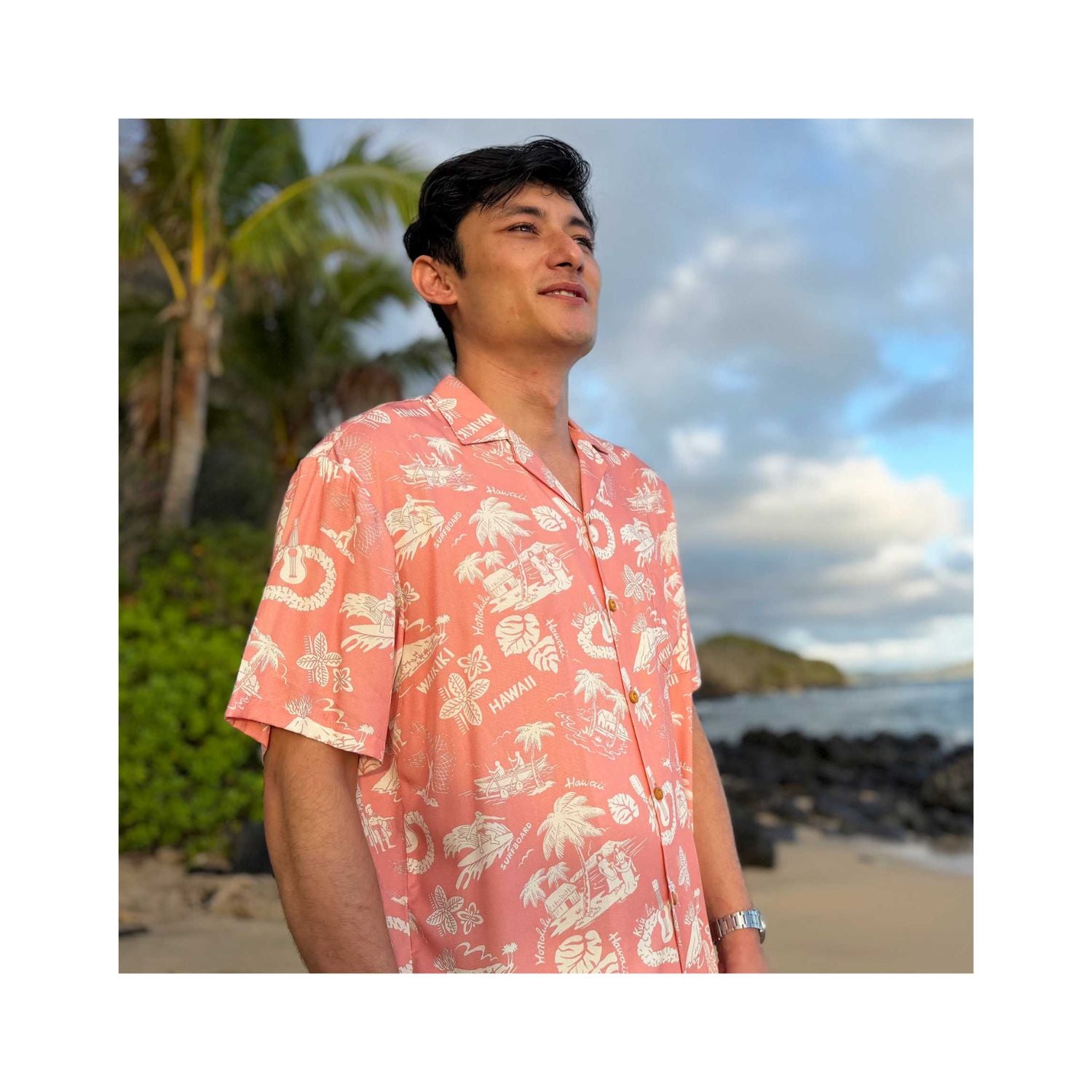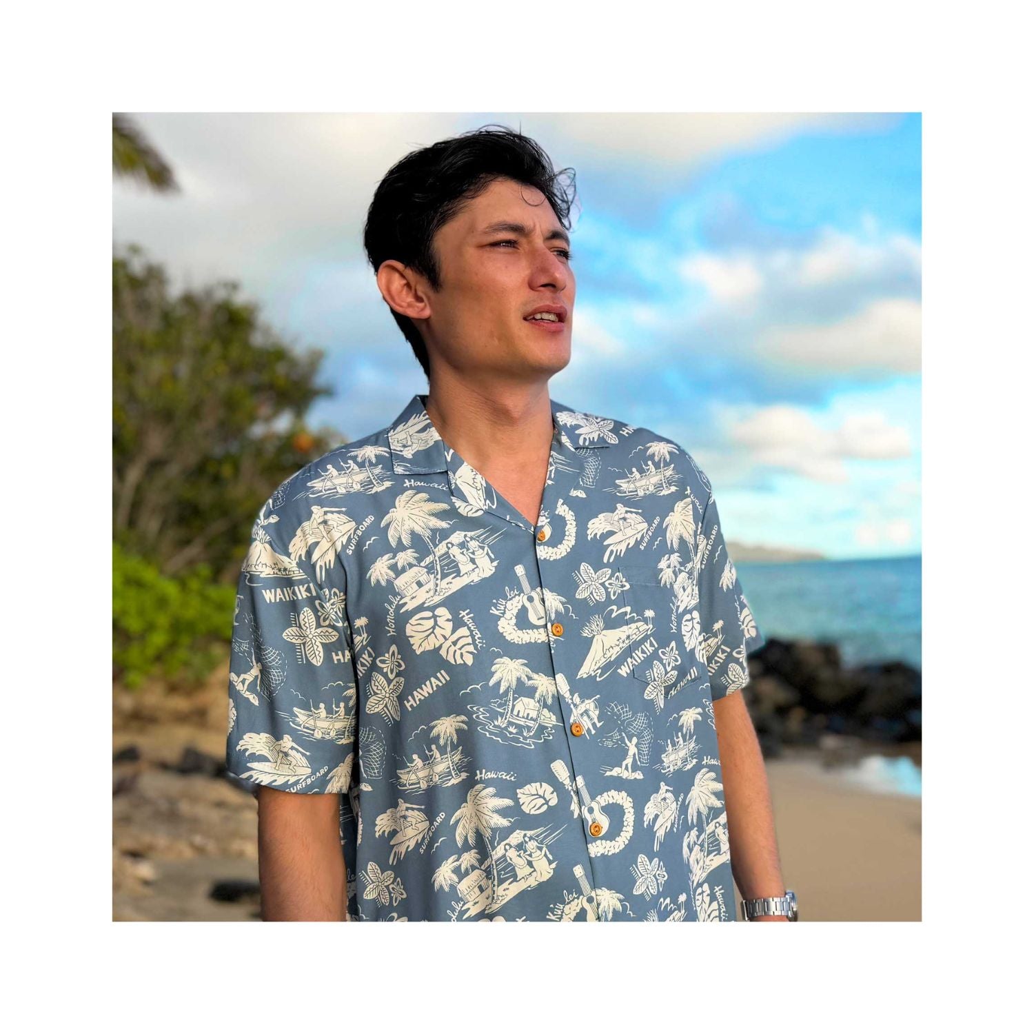 | その他商品説明 | □定番スタイルのアロハシャツです☆ 胸ポケットの柄は身頃の柄に合わせているのがオススメ! 着心地を考えて背中のヨークに2タックがさらに上質に!! ボタンはココナッツを使用しております。 さらっとした肌触りのレーヨン100% お洗濯は手洗い、もしくはクリーニングが理想です。 |