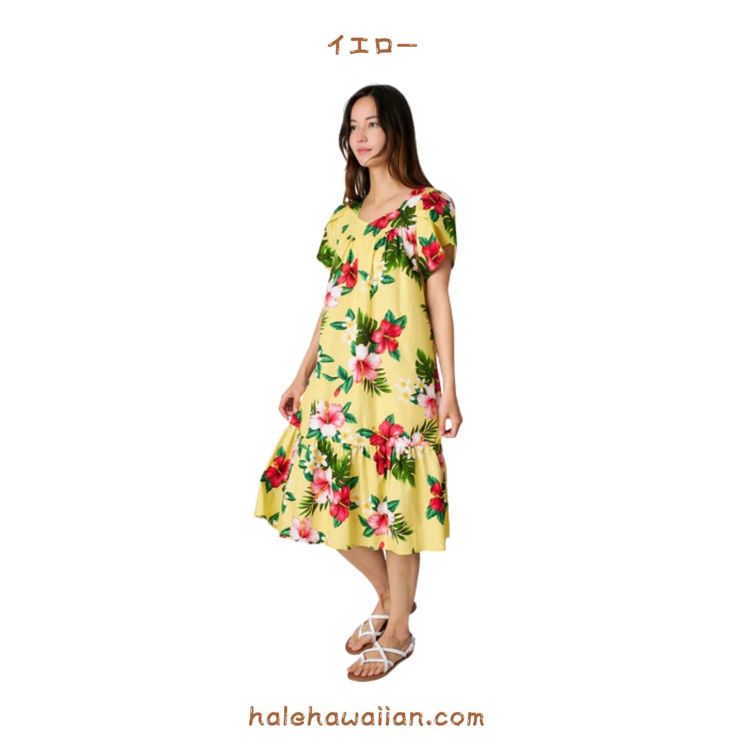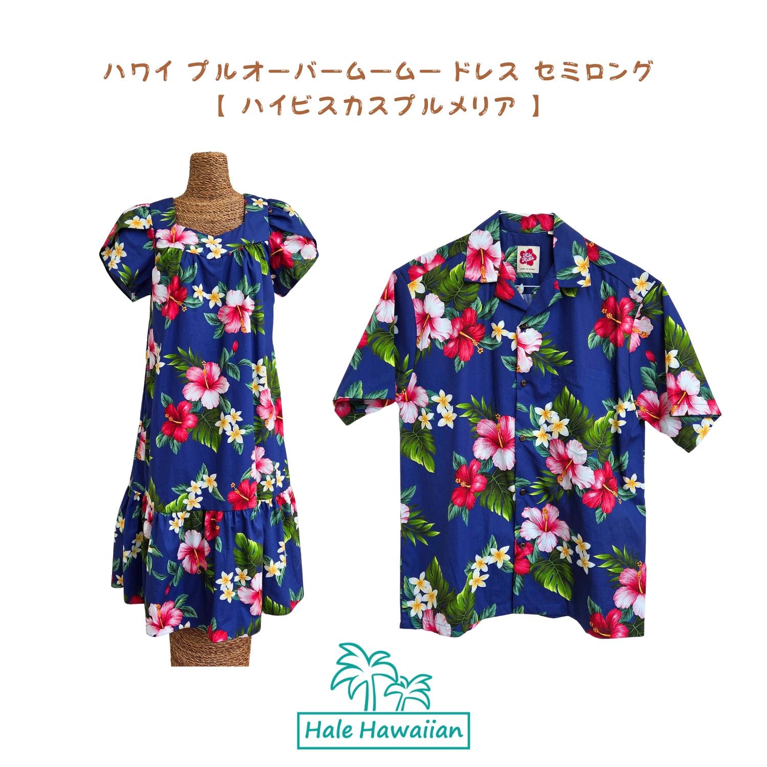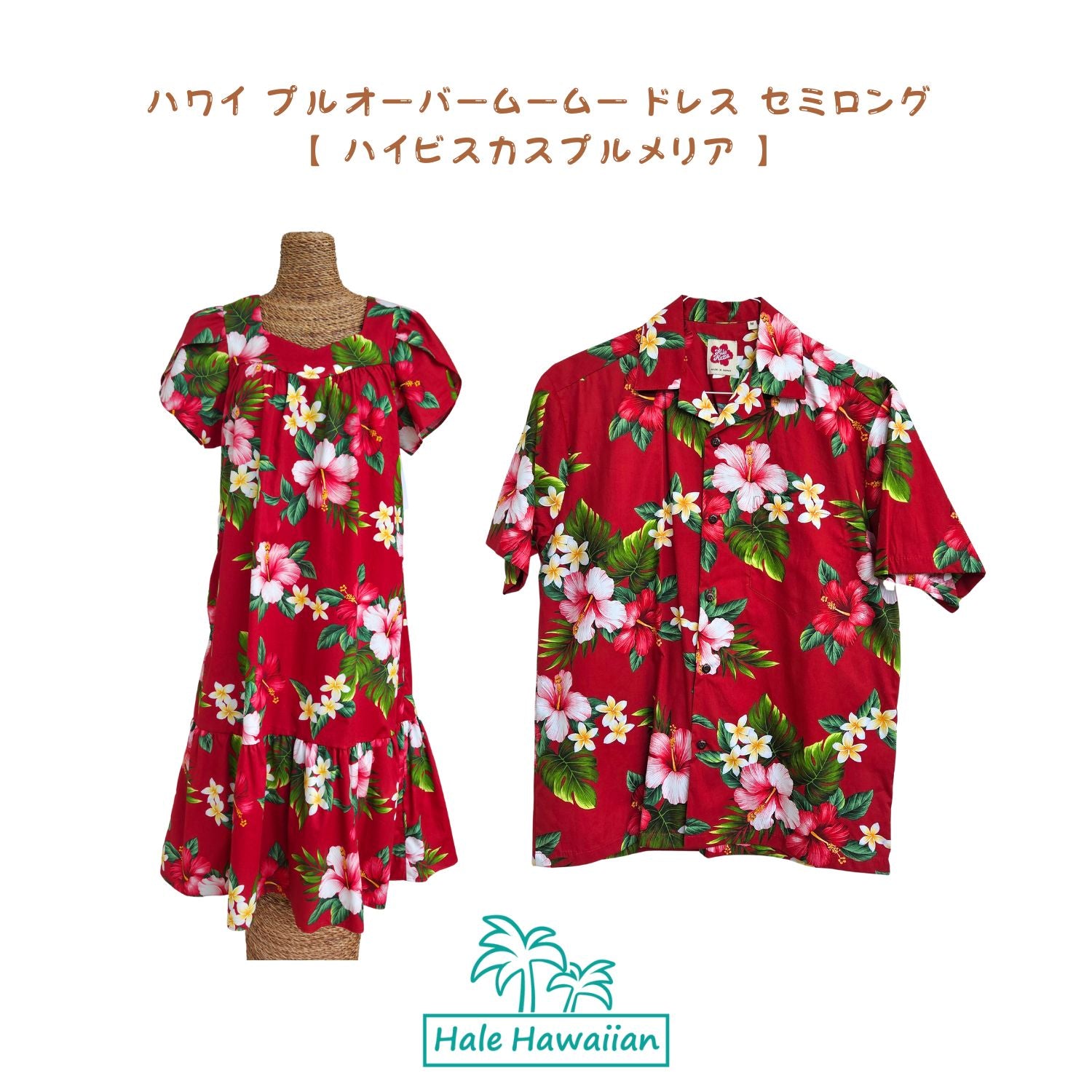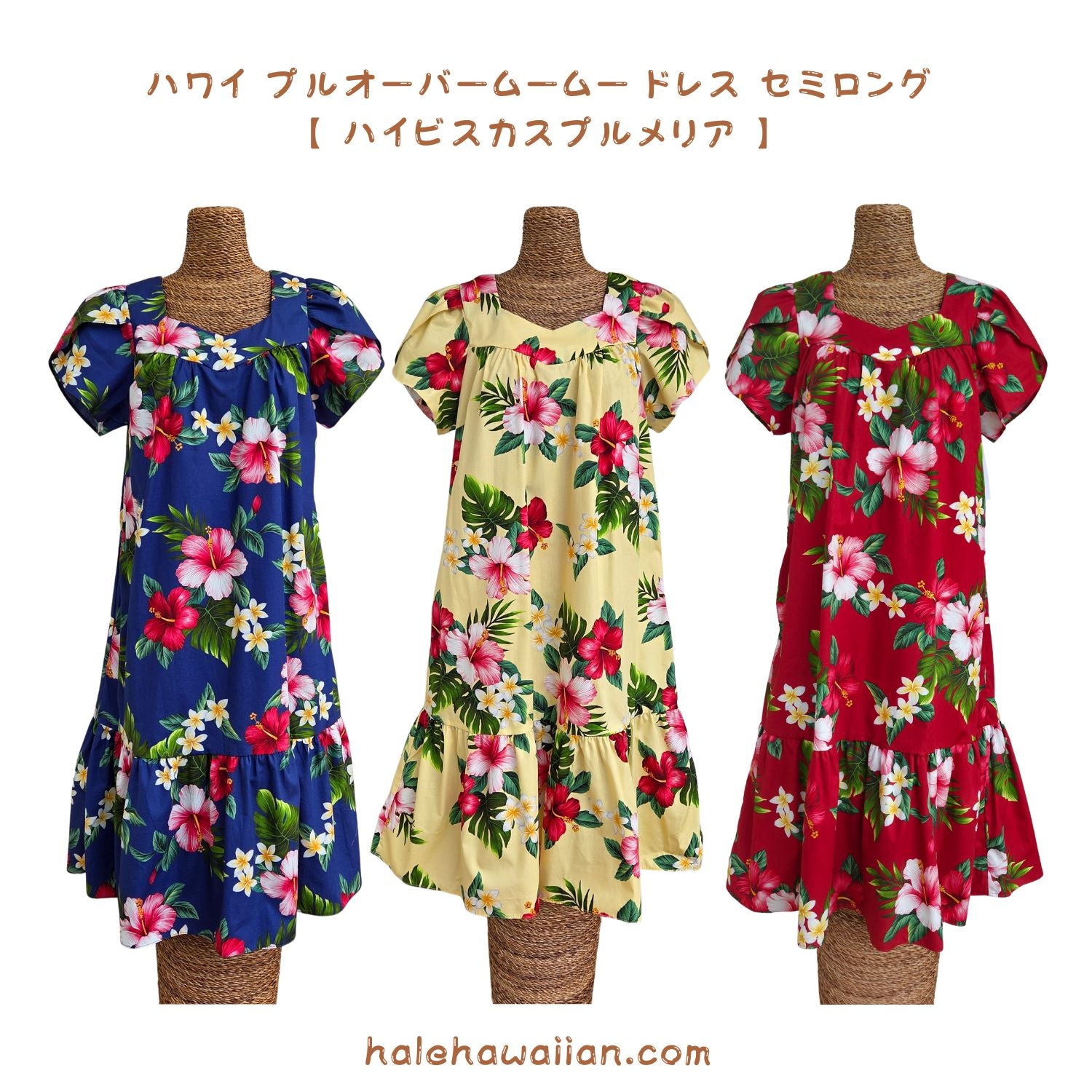 ハワイアン プルオーバームームー ドレス セミロング 【 ハイビスカス プルメリア 】