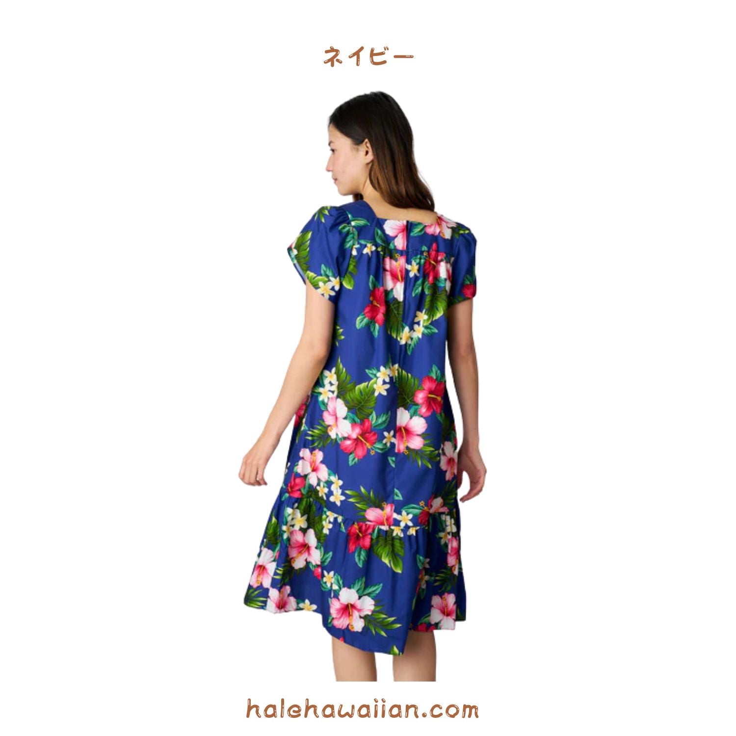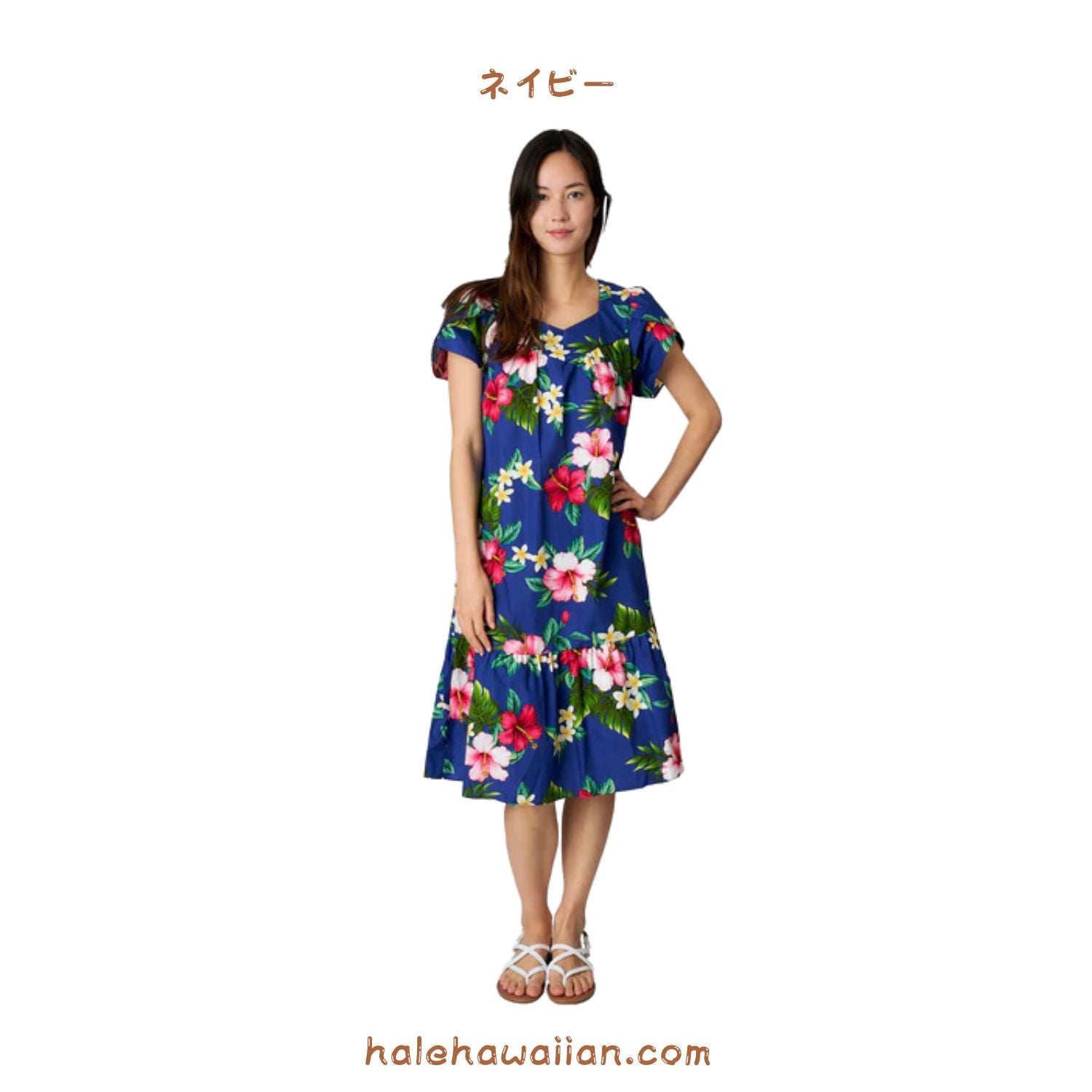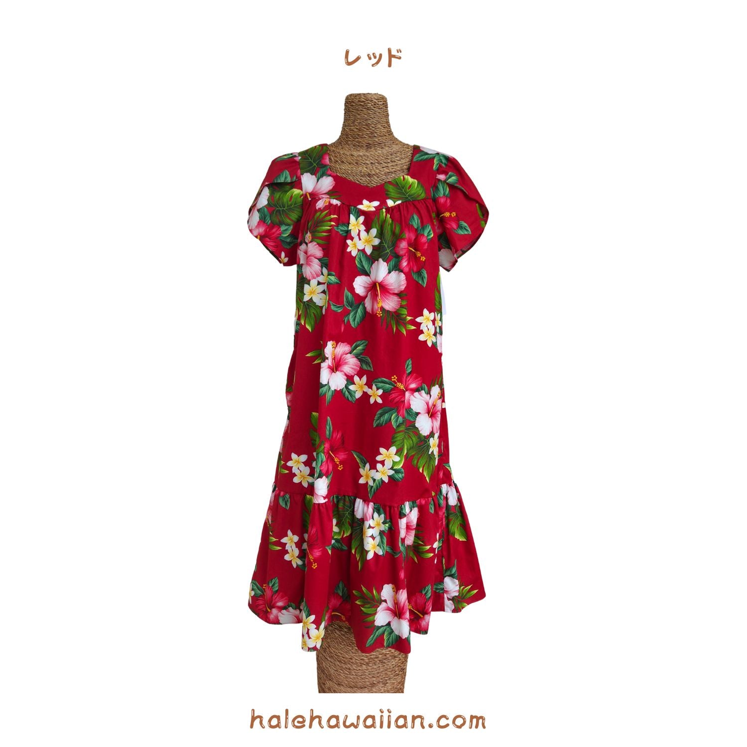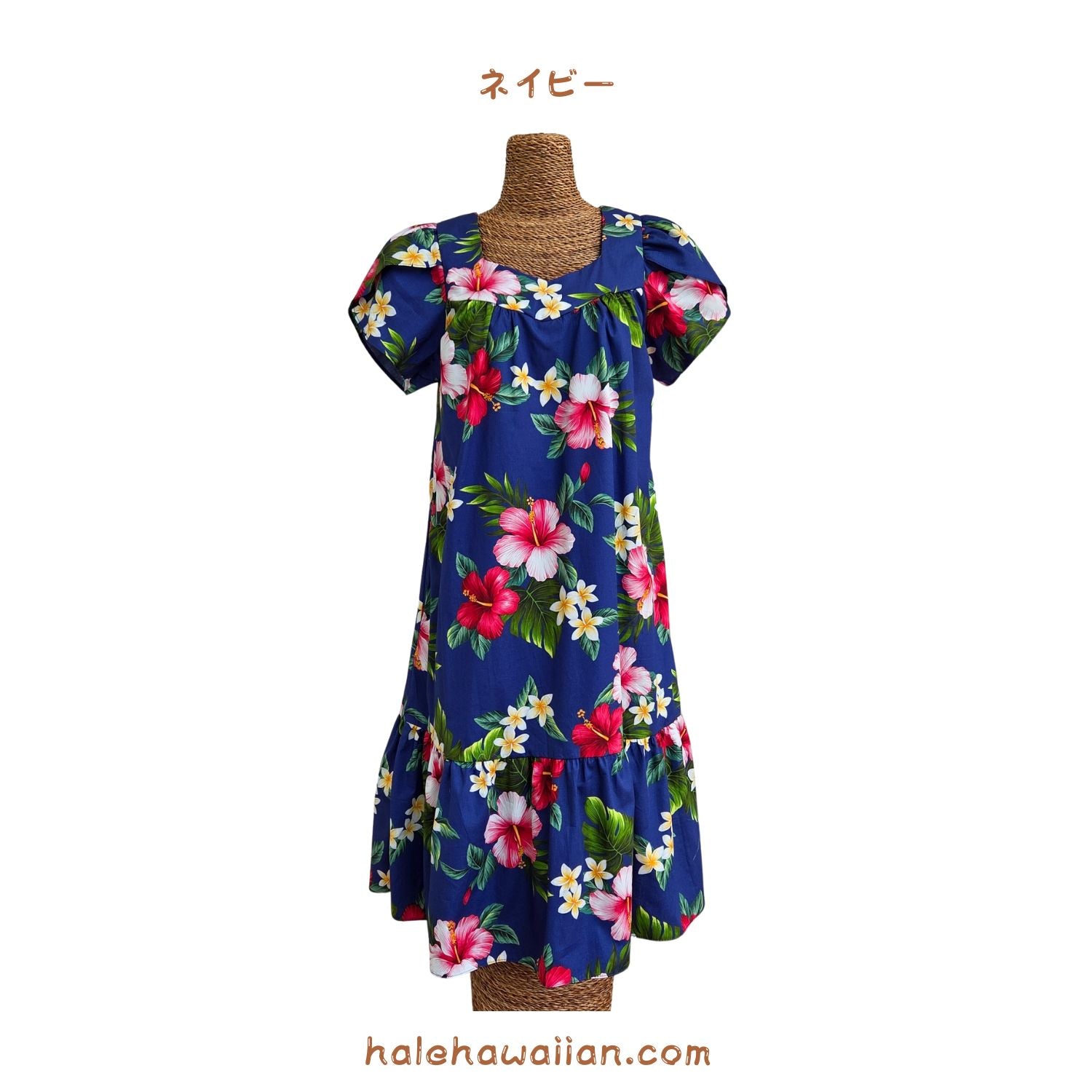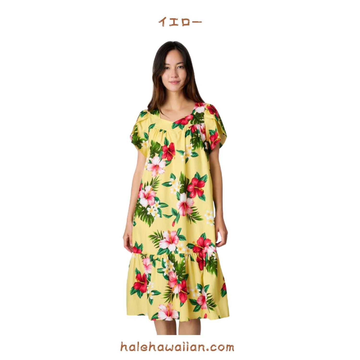 ハワイアン プルオーバームームー ドレス セミロング 【 ハイビスカス プルメリア 】