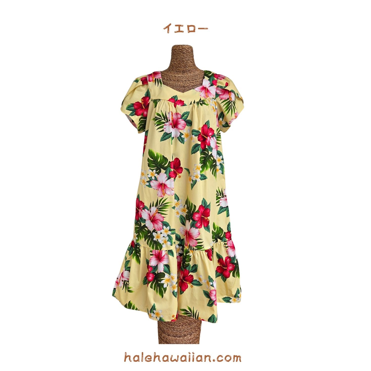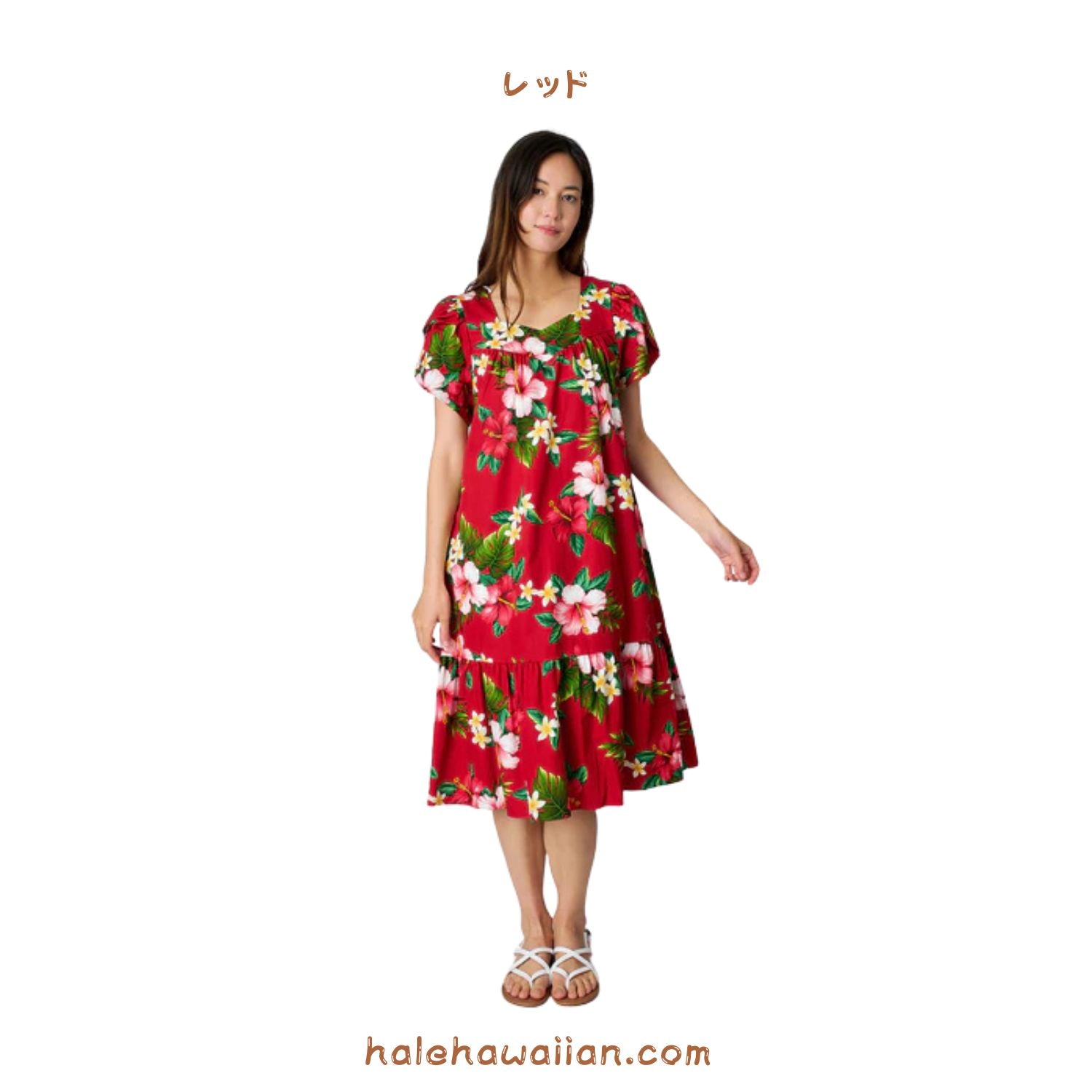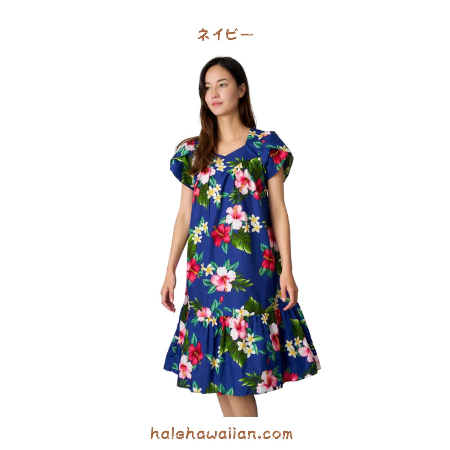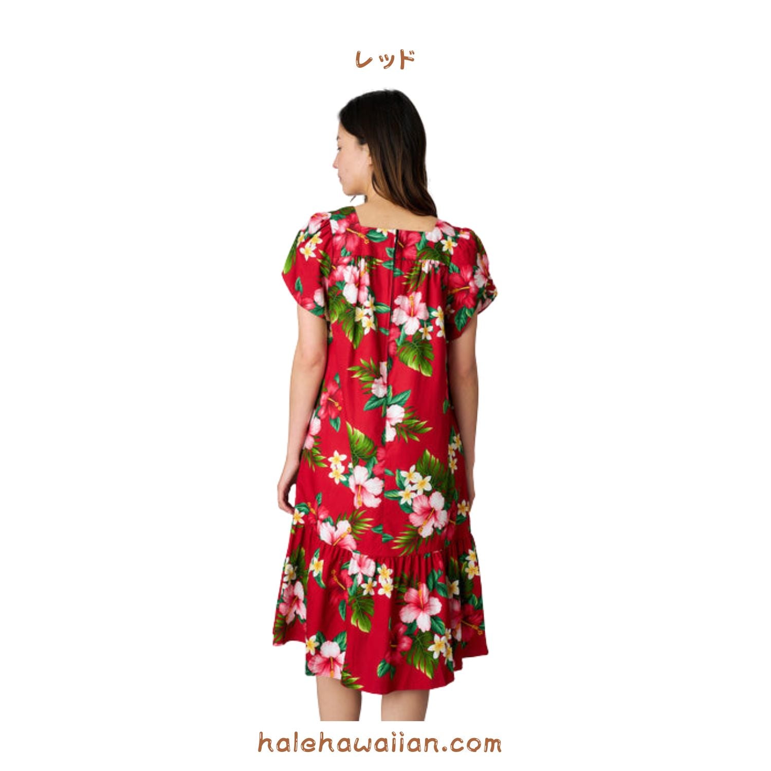 ハワイアン プルオーバームームー ドレス セミロング 【 ハイビスカス プルメリア 】