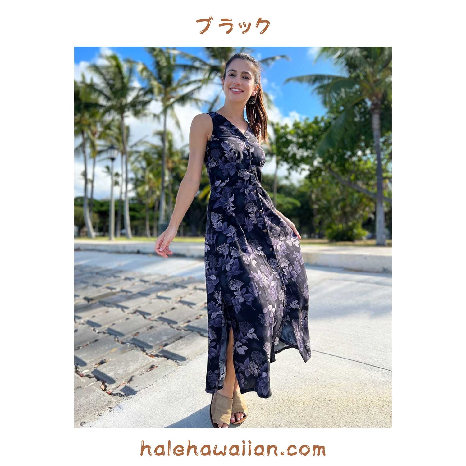 | ?サイズ/寸法 | ・マキシ丈ロングドレス ・Aライン ・背中部分にウエスト調節リボンあり ・両端下にスリット入り ・両サイドにポケットあり ・ボタン素材:ココナッツ ・メイドインハワイ |