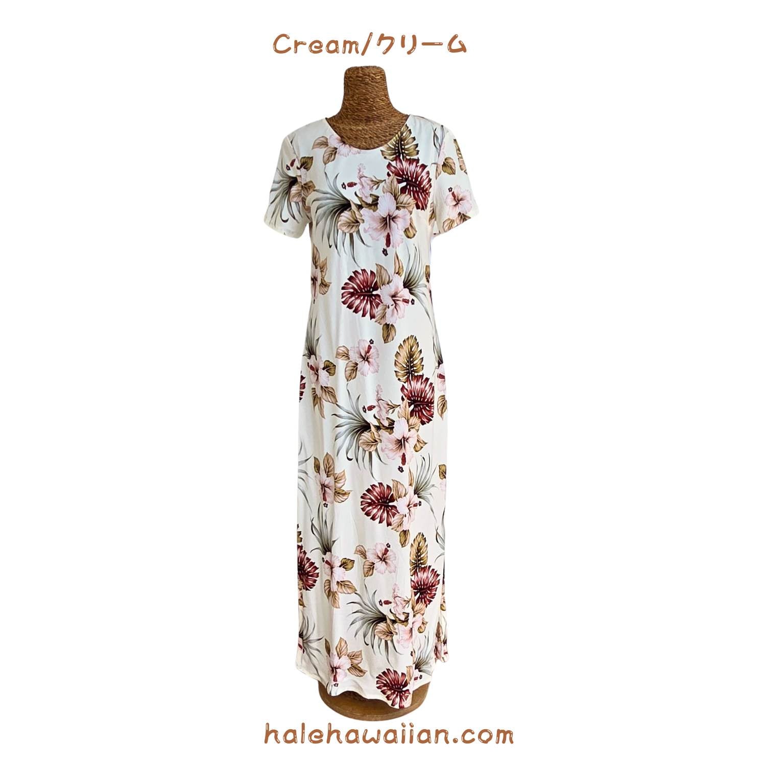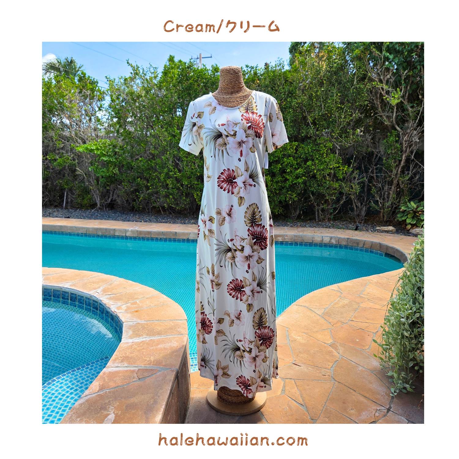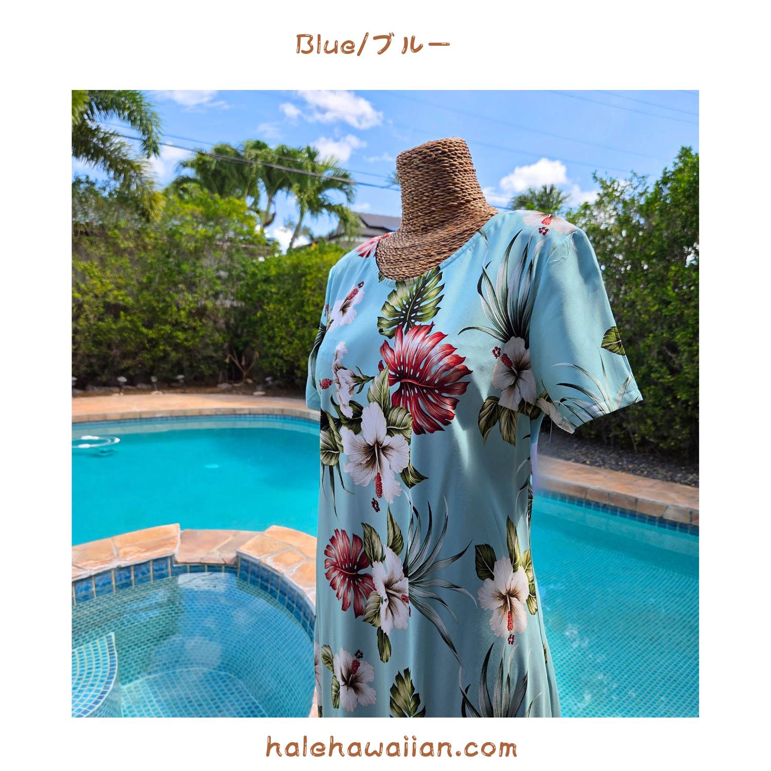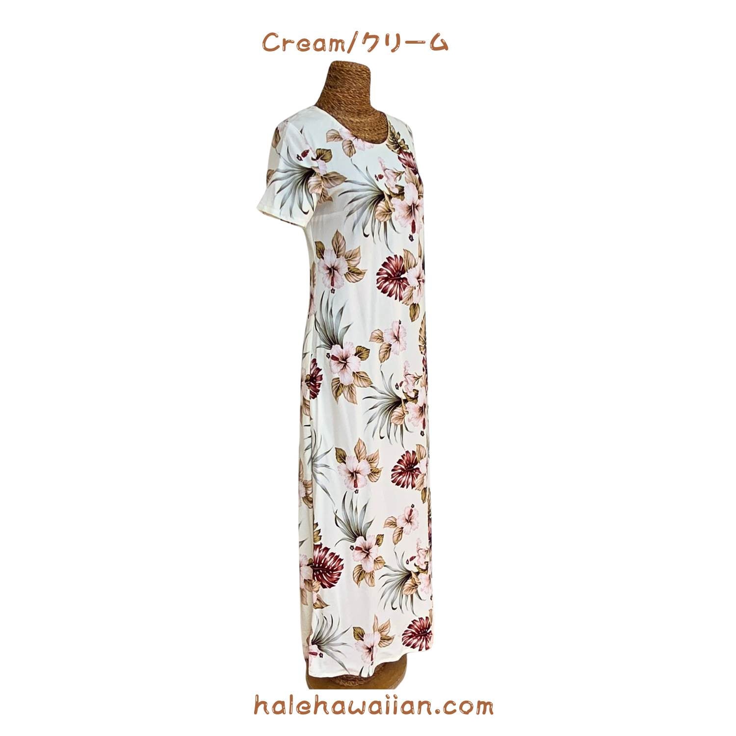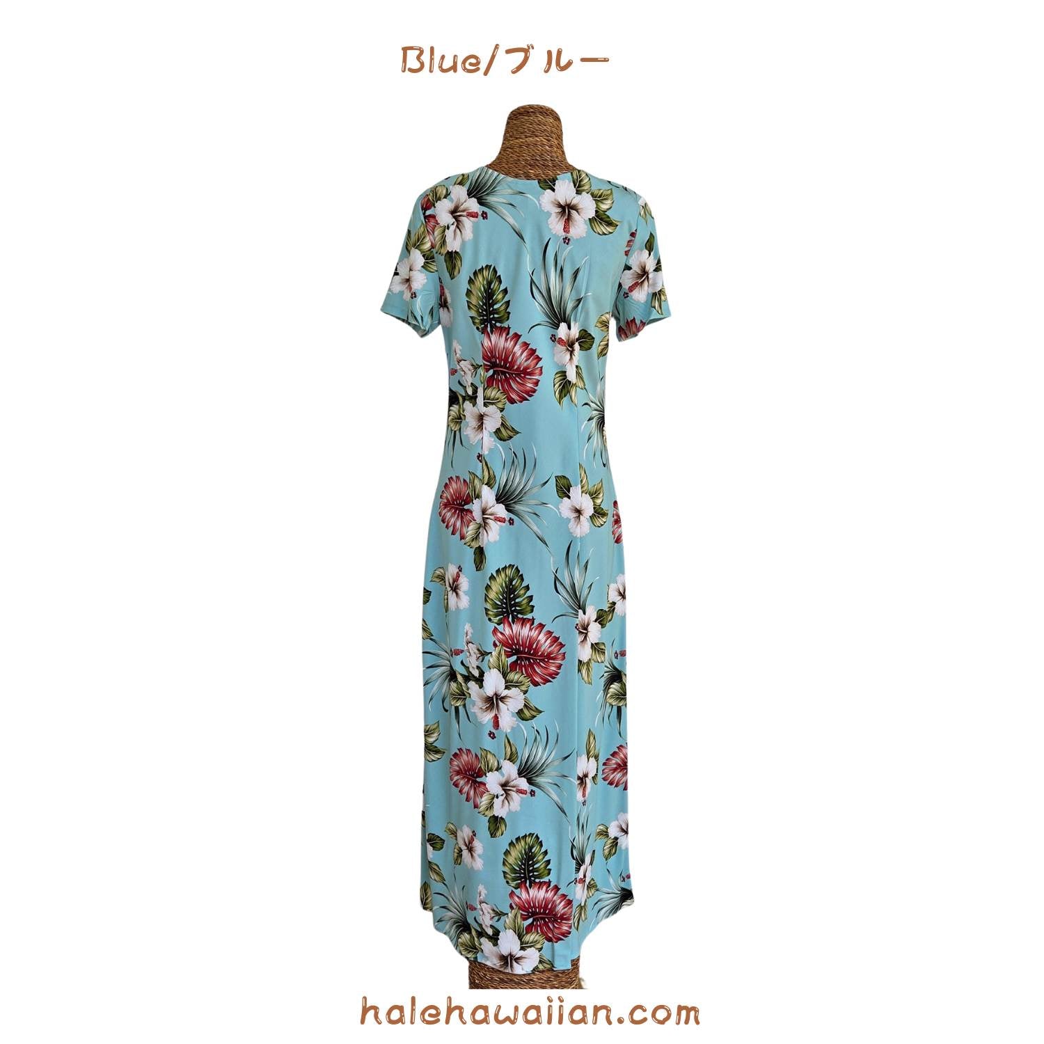 新作 ハワイアン レーヨン スリーブ ロングドレス 【 ハイビスカス&モンステラ 】