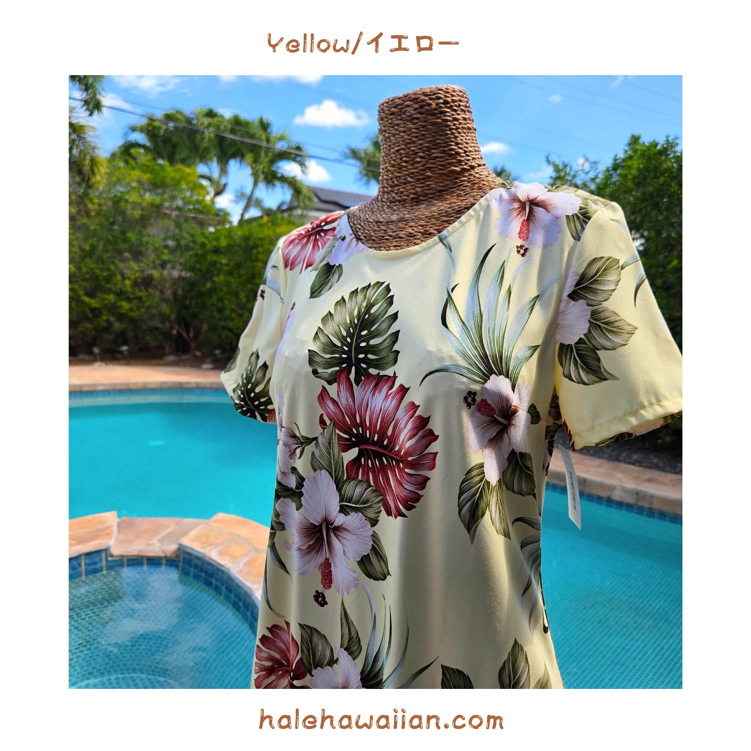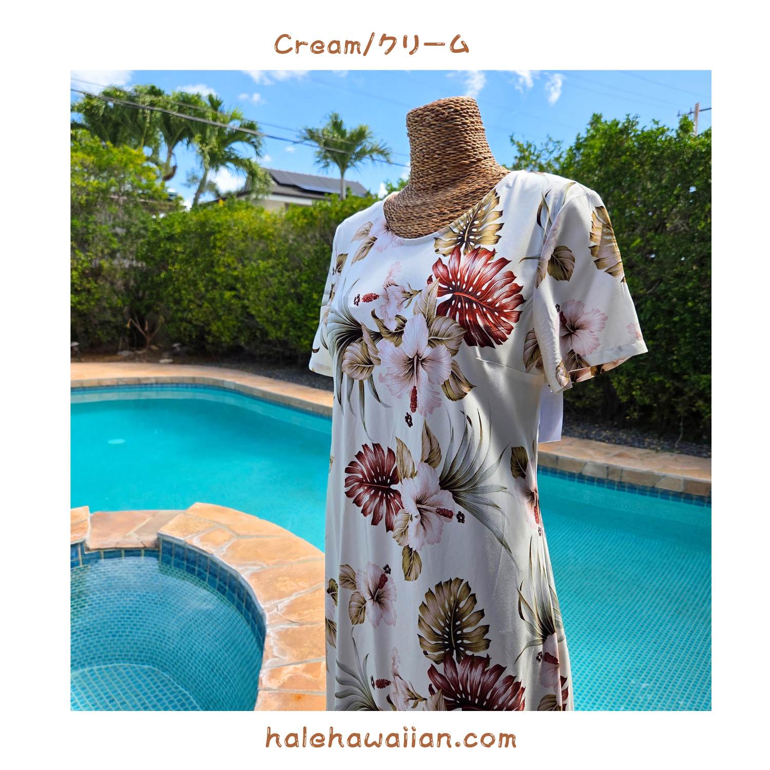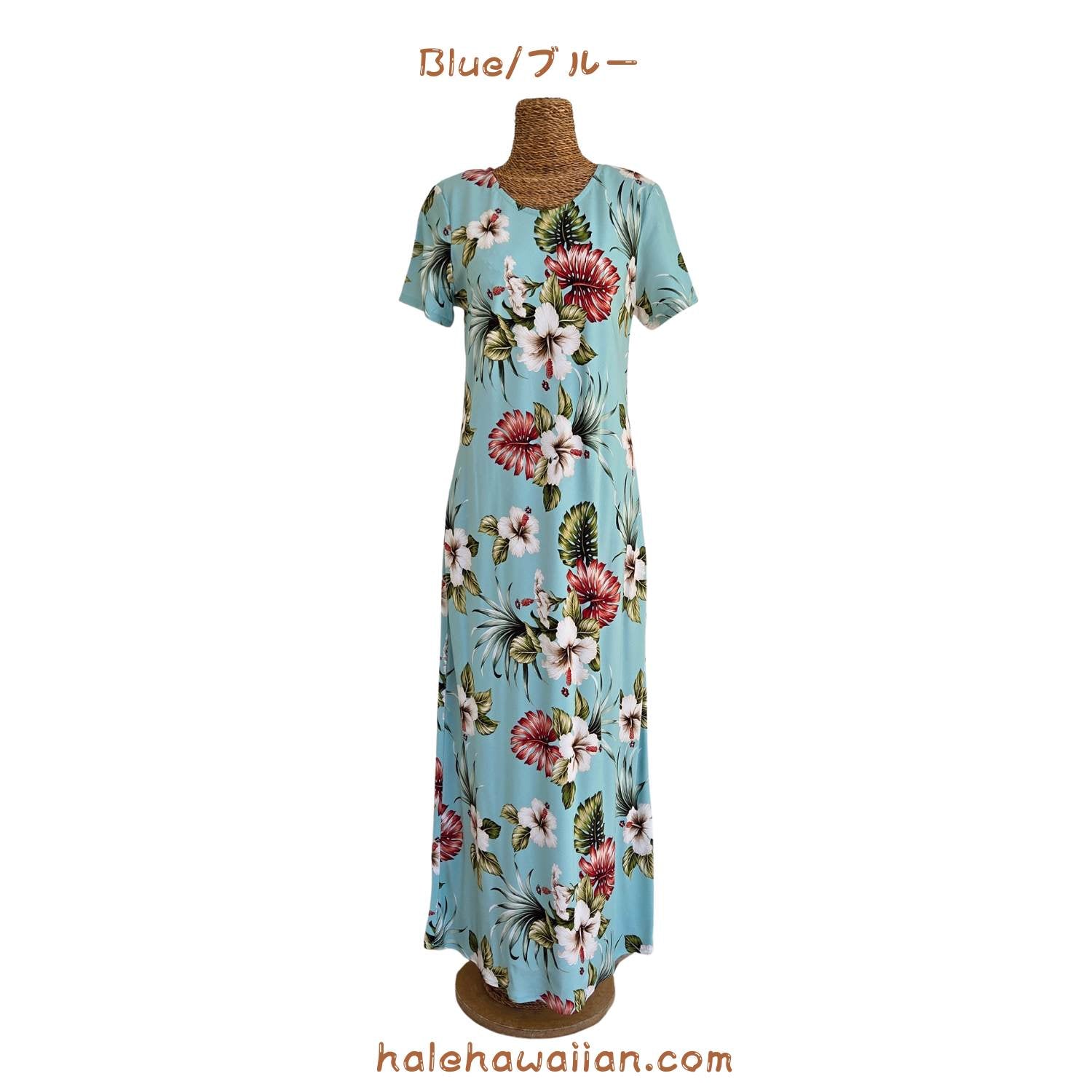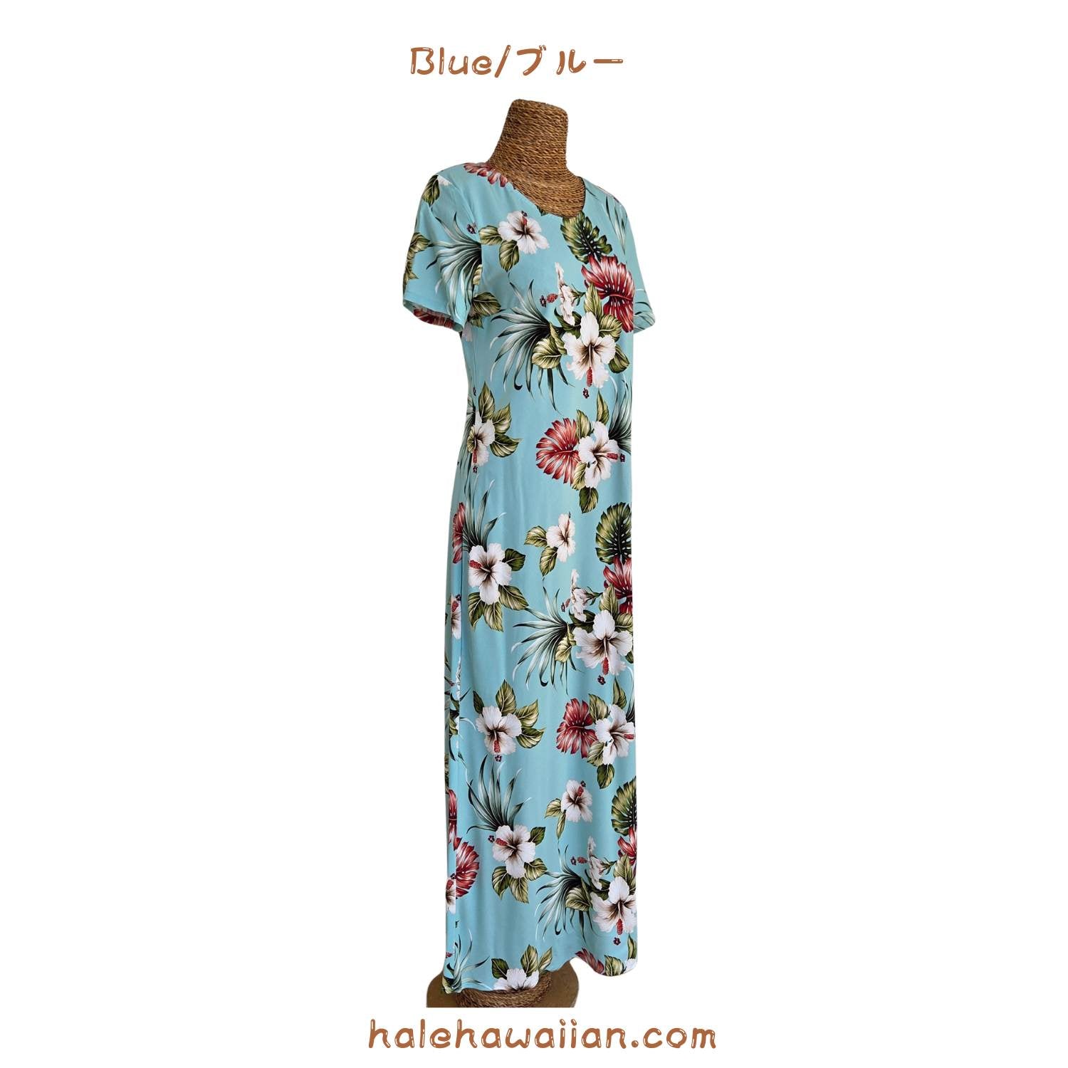 新作 ハワイアン レーヨン スリーブ ロングドレス 【 ハイビスカス&モンステラ 】