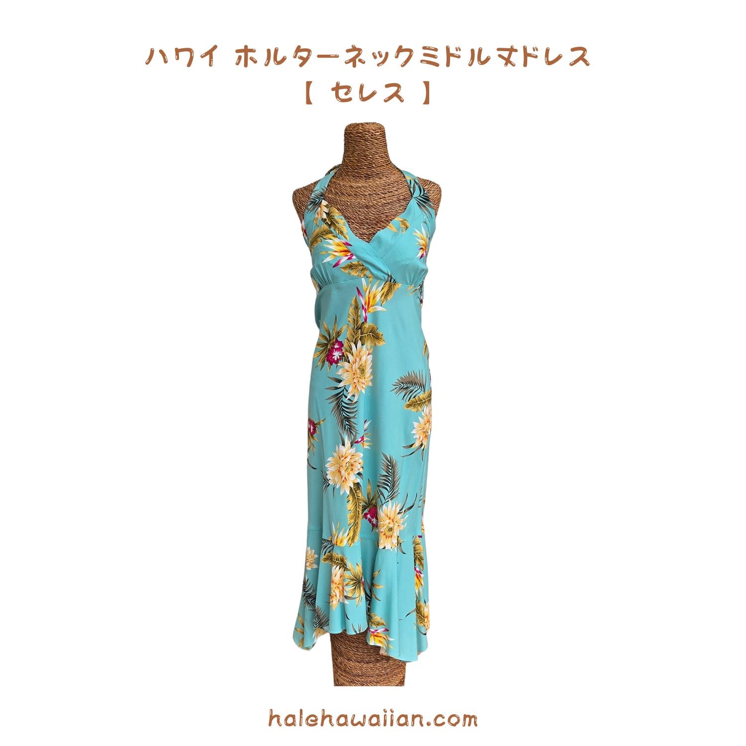 ハワイ レディース ホルターネック ミドル丈ドレス 904R 【 セレス】
